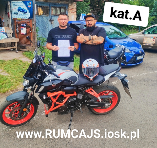 kat .A - poj powyżej 600 cm3 /40 kW (24lata lub 20lat posiadając kat.A2) Yamaha MT07, Suzuki SV650